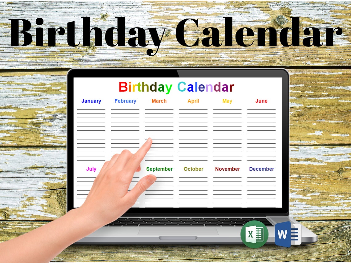 Editable Birthday Calendar Customizable Easily Printable Microsoft