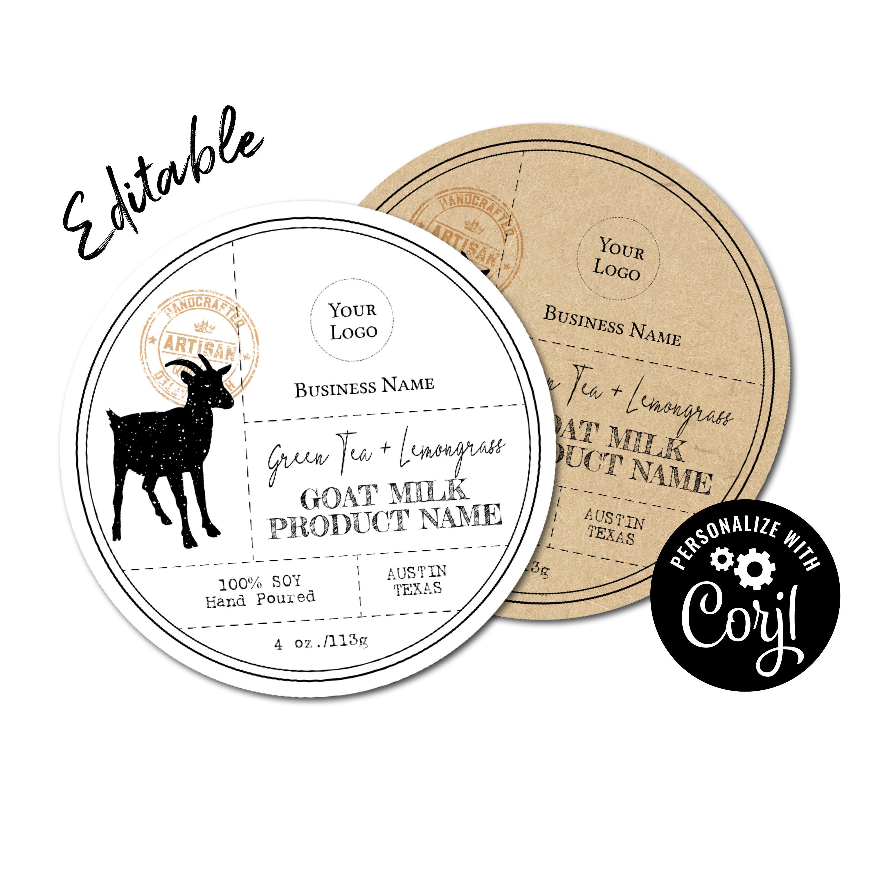 Goat Milk Editable Circle Label Template Custom Digital Etsy