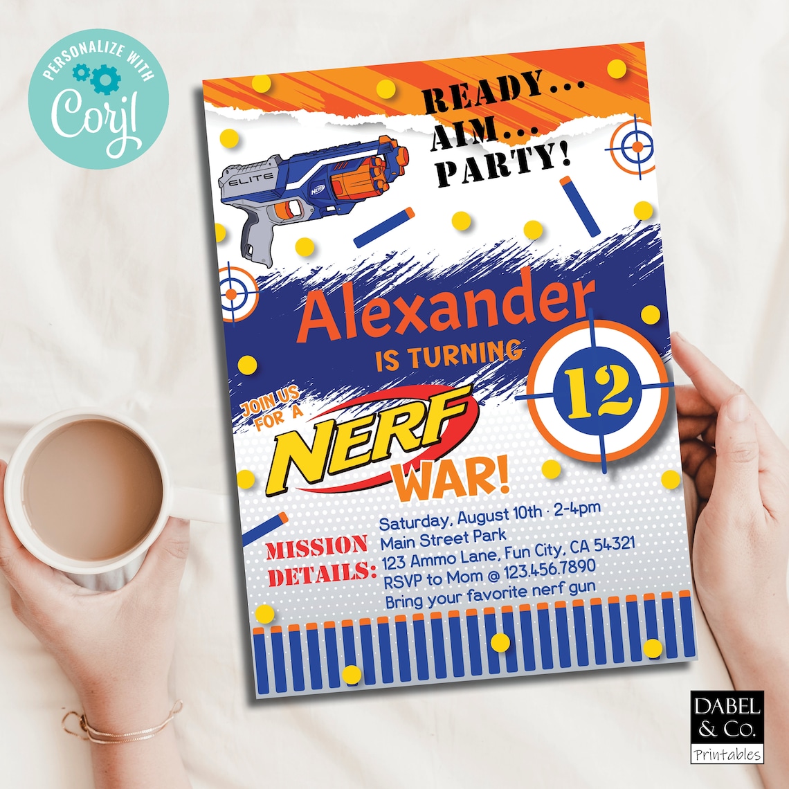 Nerf Birthday Invitation Nerf War Dart Gun Battle Editable Birthday