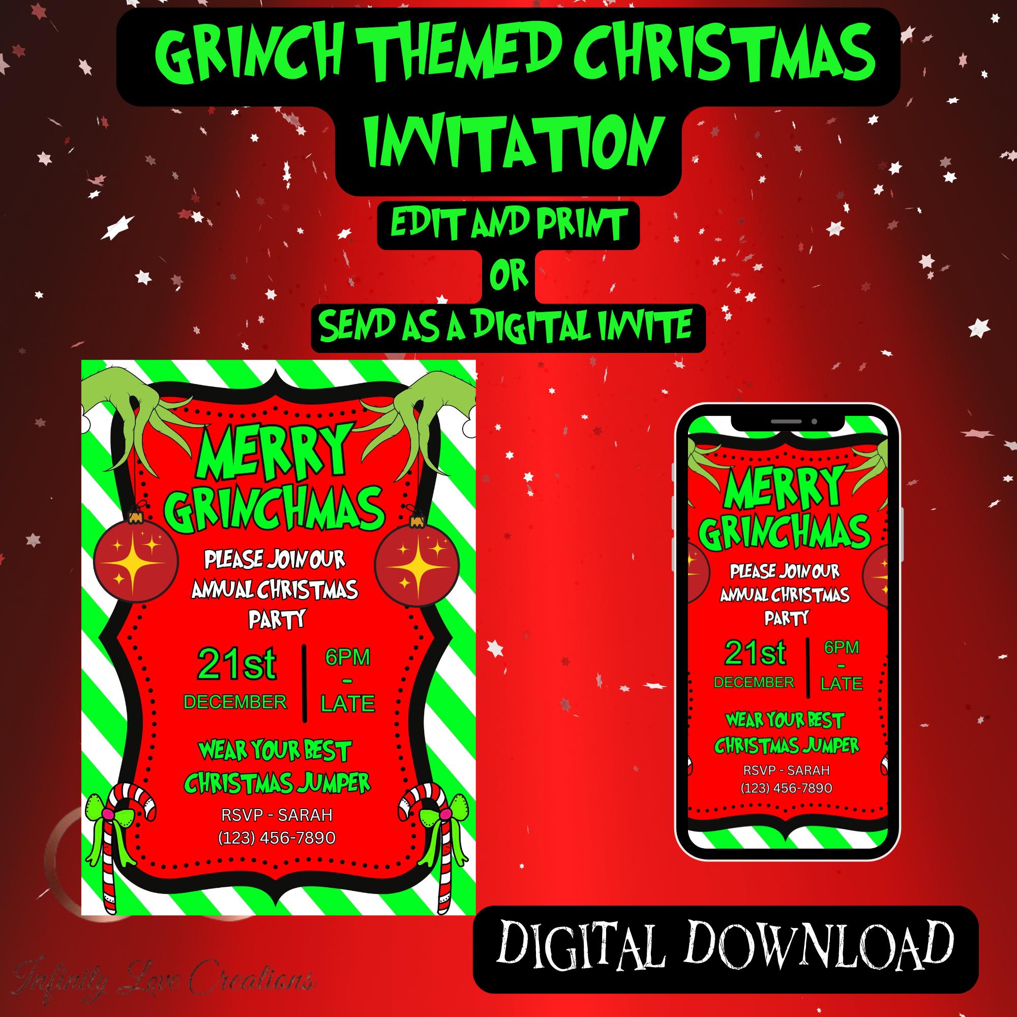 Editable Grinch Party Invitation Merry Grinchmas Invitation Etsy