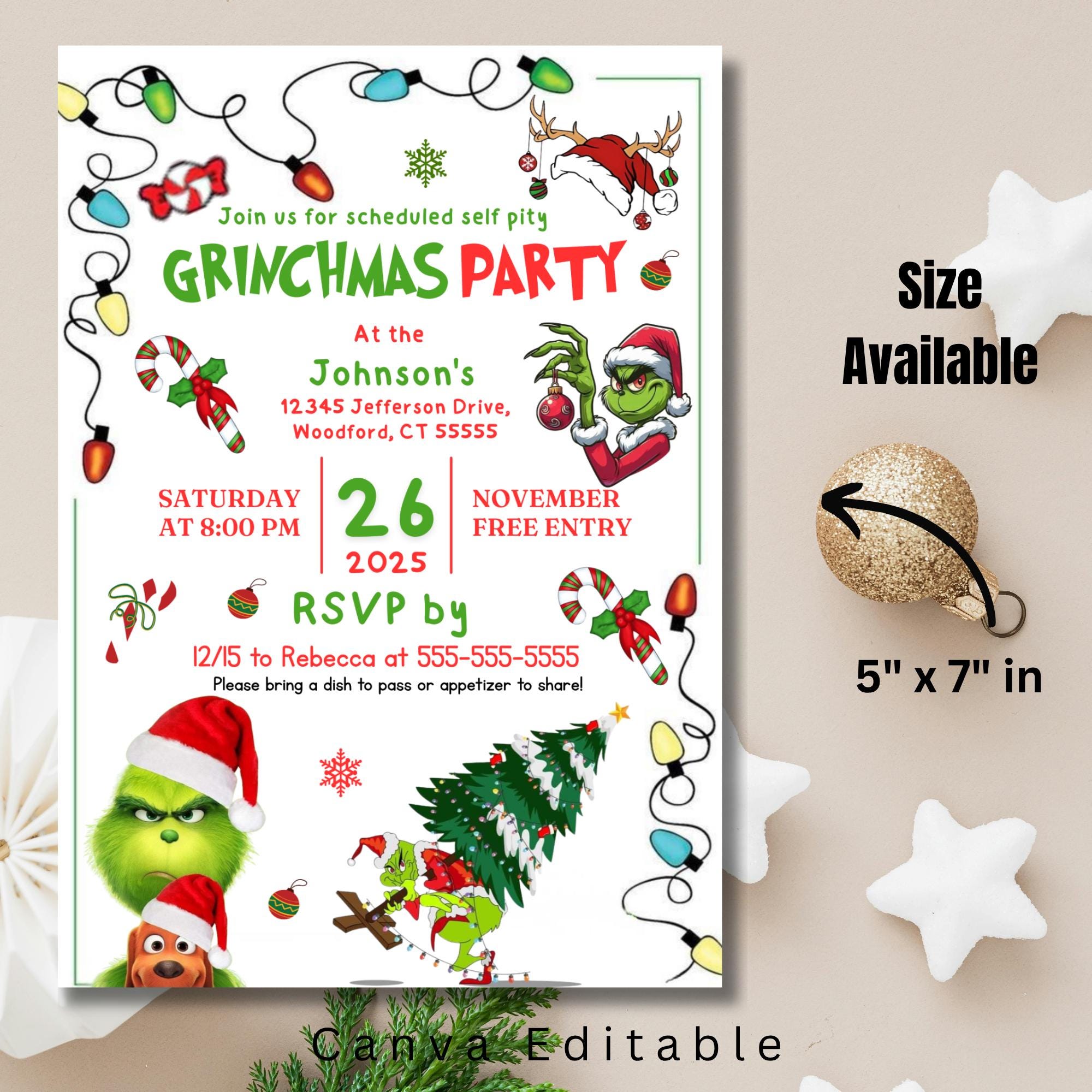 Editable Grinch Christmas Party Invitation: Canva Template (10x14 Inch