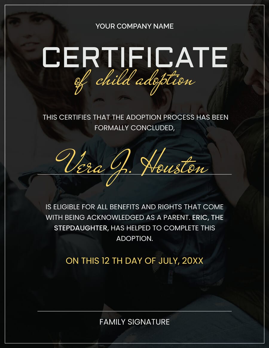 Free Adoption Certificate Templates by WordLayouts