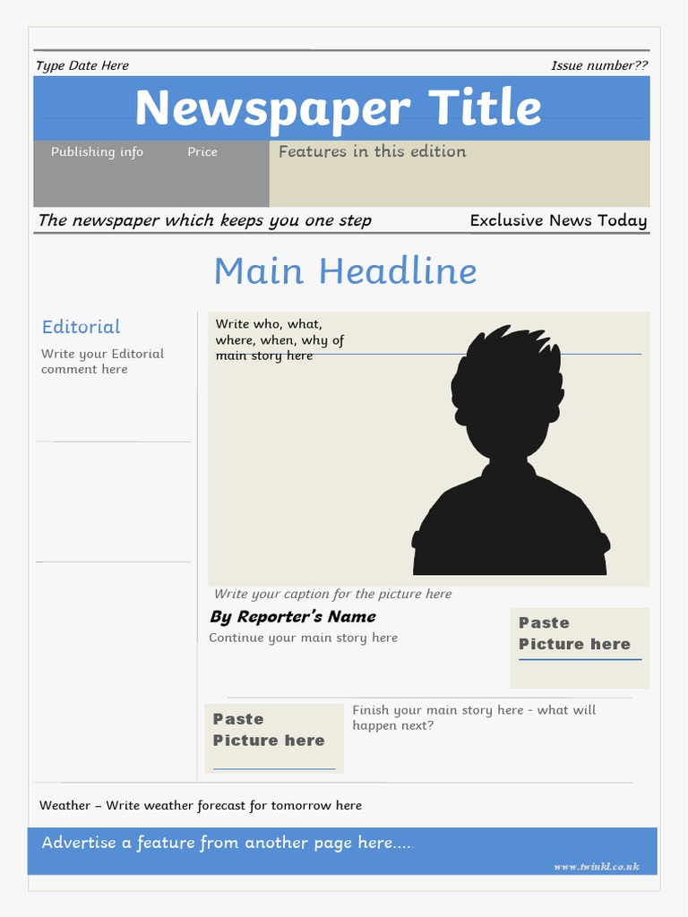 Editable Newspaper Template (teacher made) Twinkl