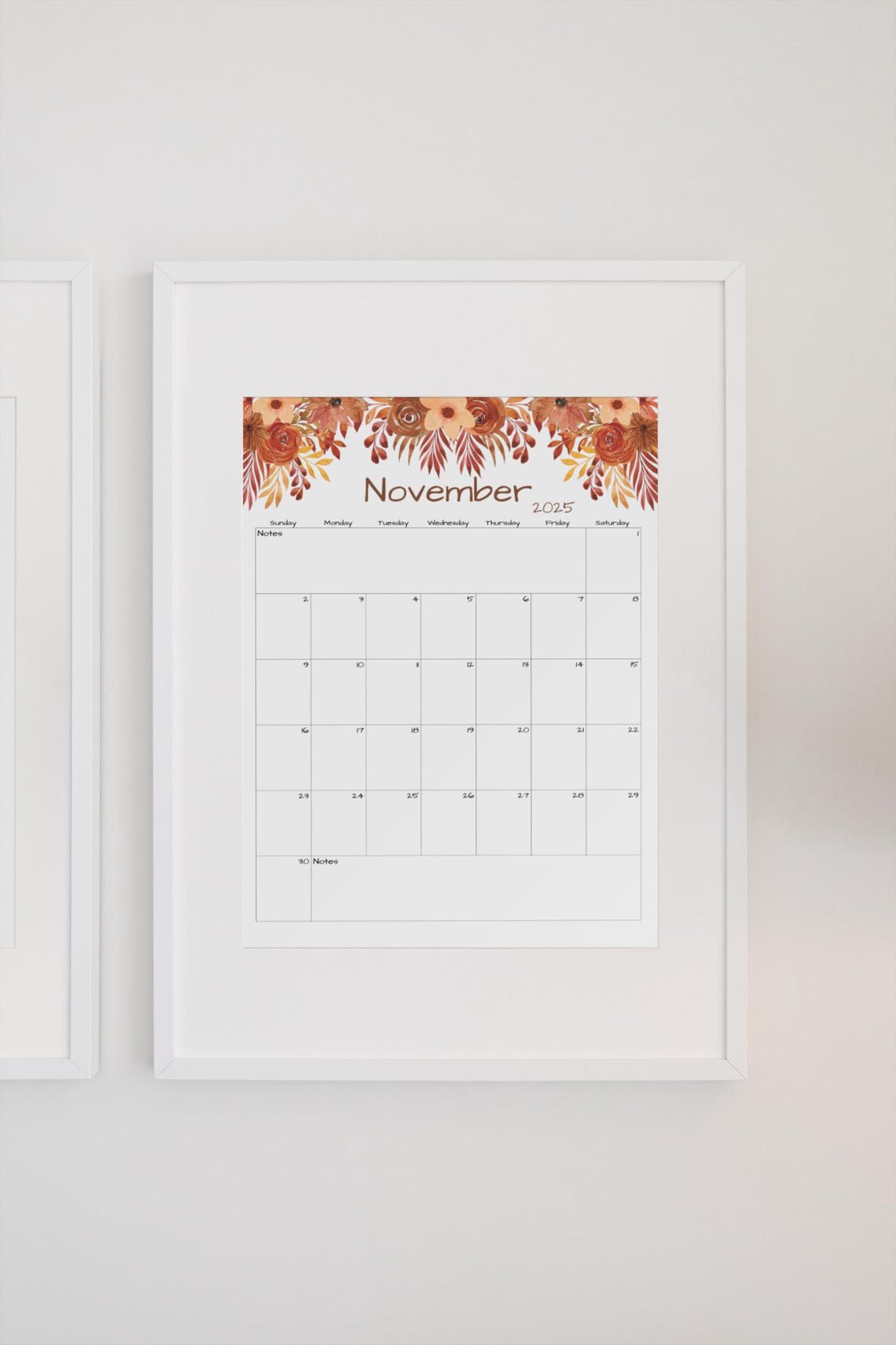Editable November 2025 Calendar Printable Wall Calendar Digital