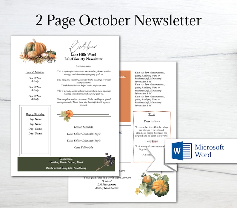 Editable October Newsletter Template/ MS Word Newsletter Etsy