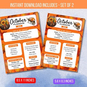 EDITABLE October Newsletter Template Classroom Printable Etsy
