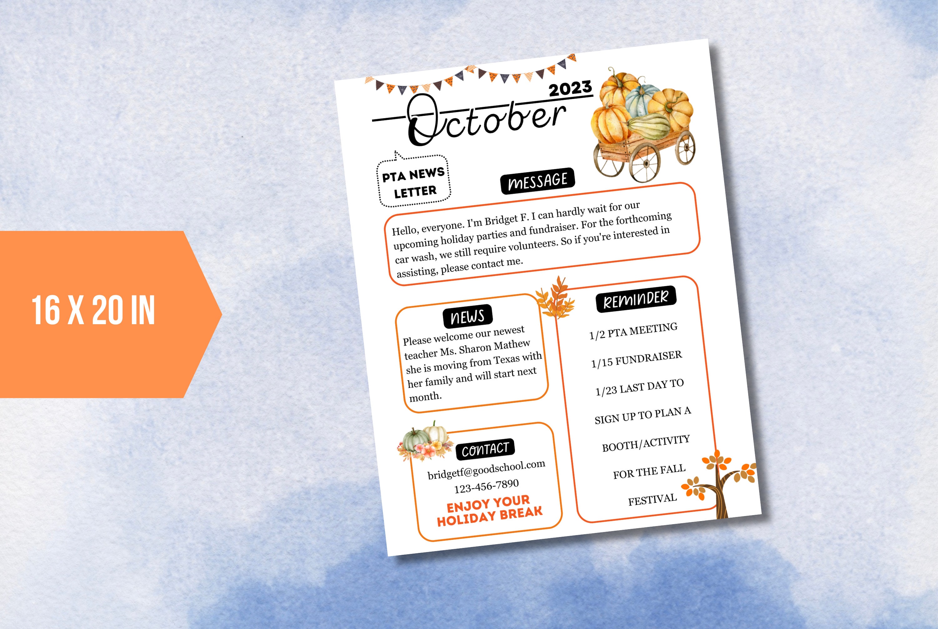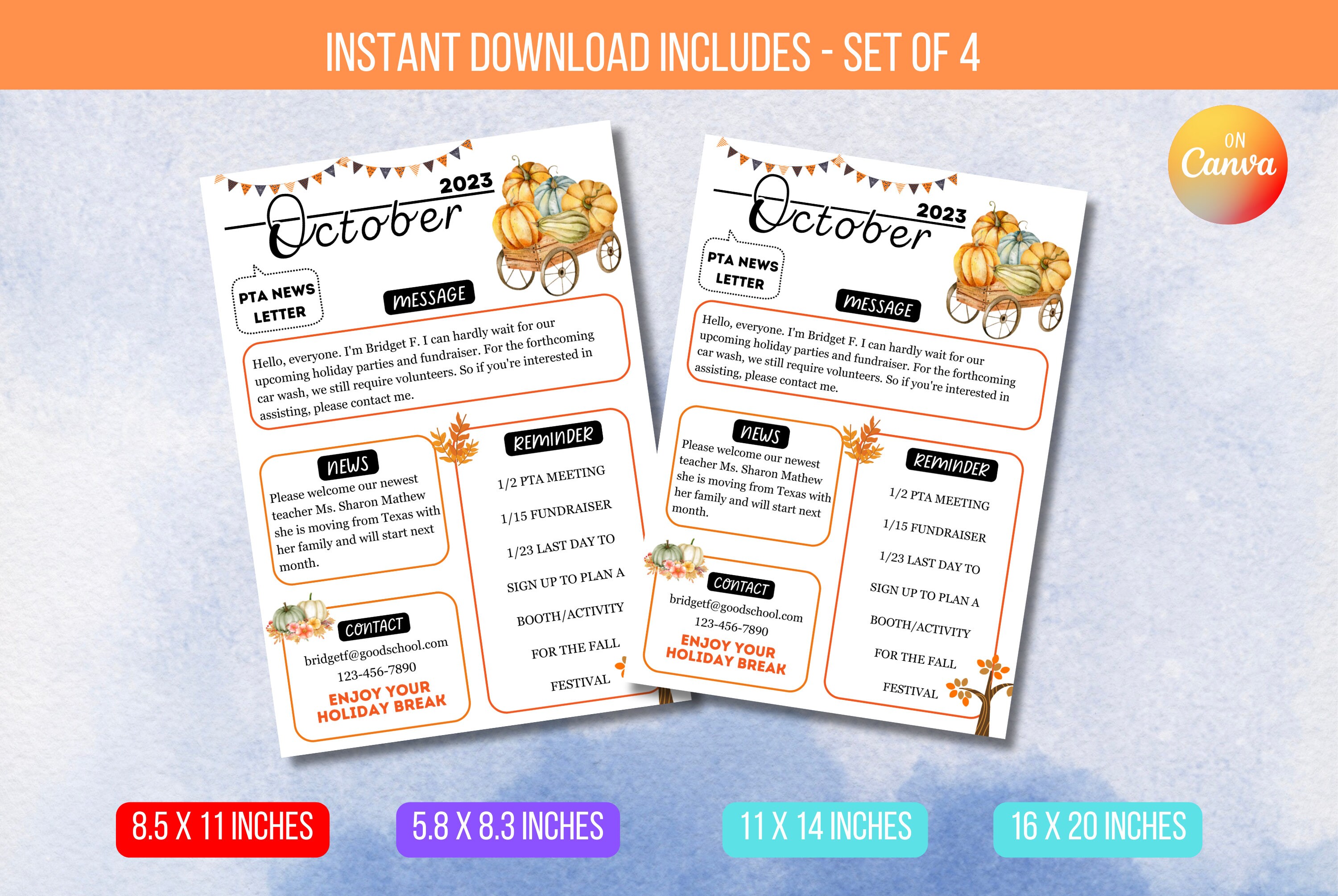 Canva October Newsletter Template/ Editable Newsletter Etsy