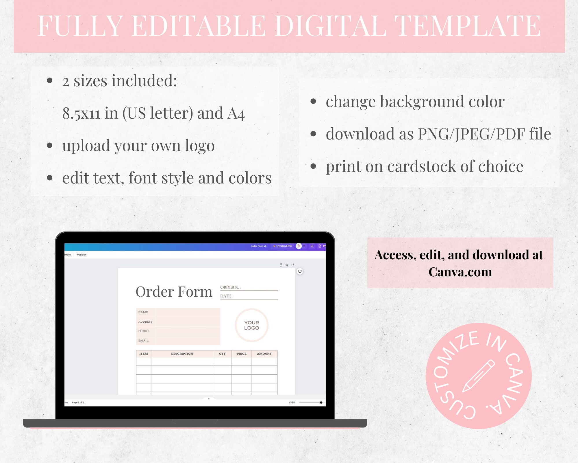 Editable order form template Artofit