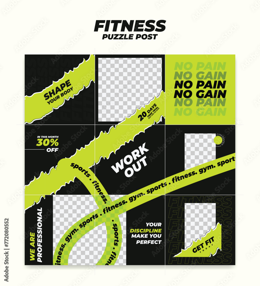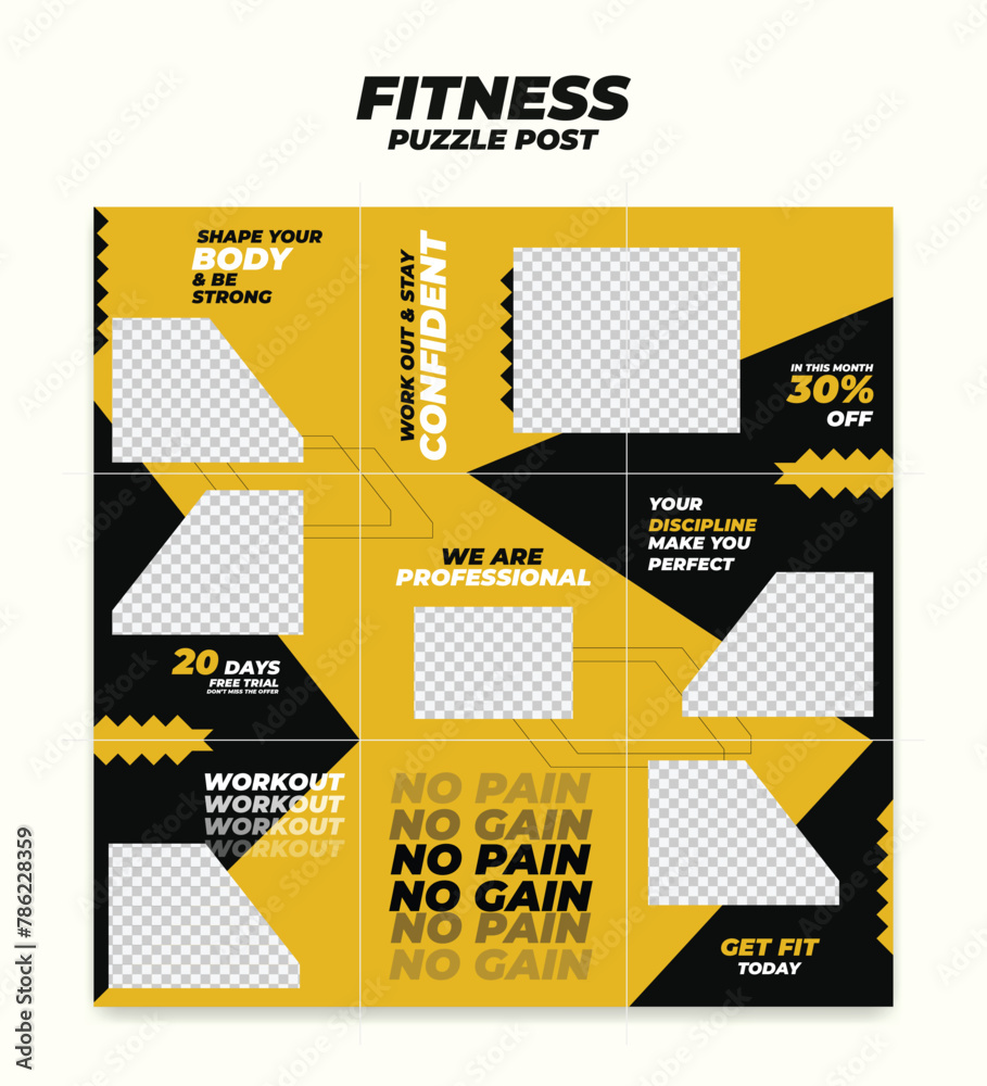 Big trendy editable puzzle template for social media post templates