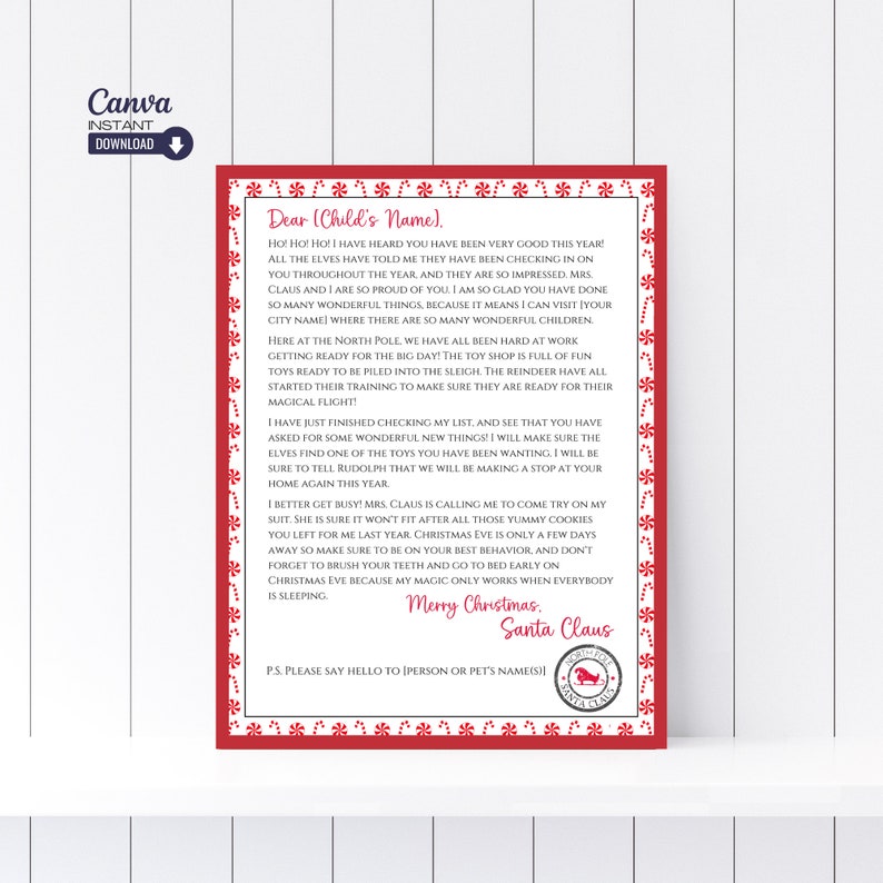 Editable Santa Letter Template Letter From Santa Template Etsy