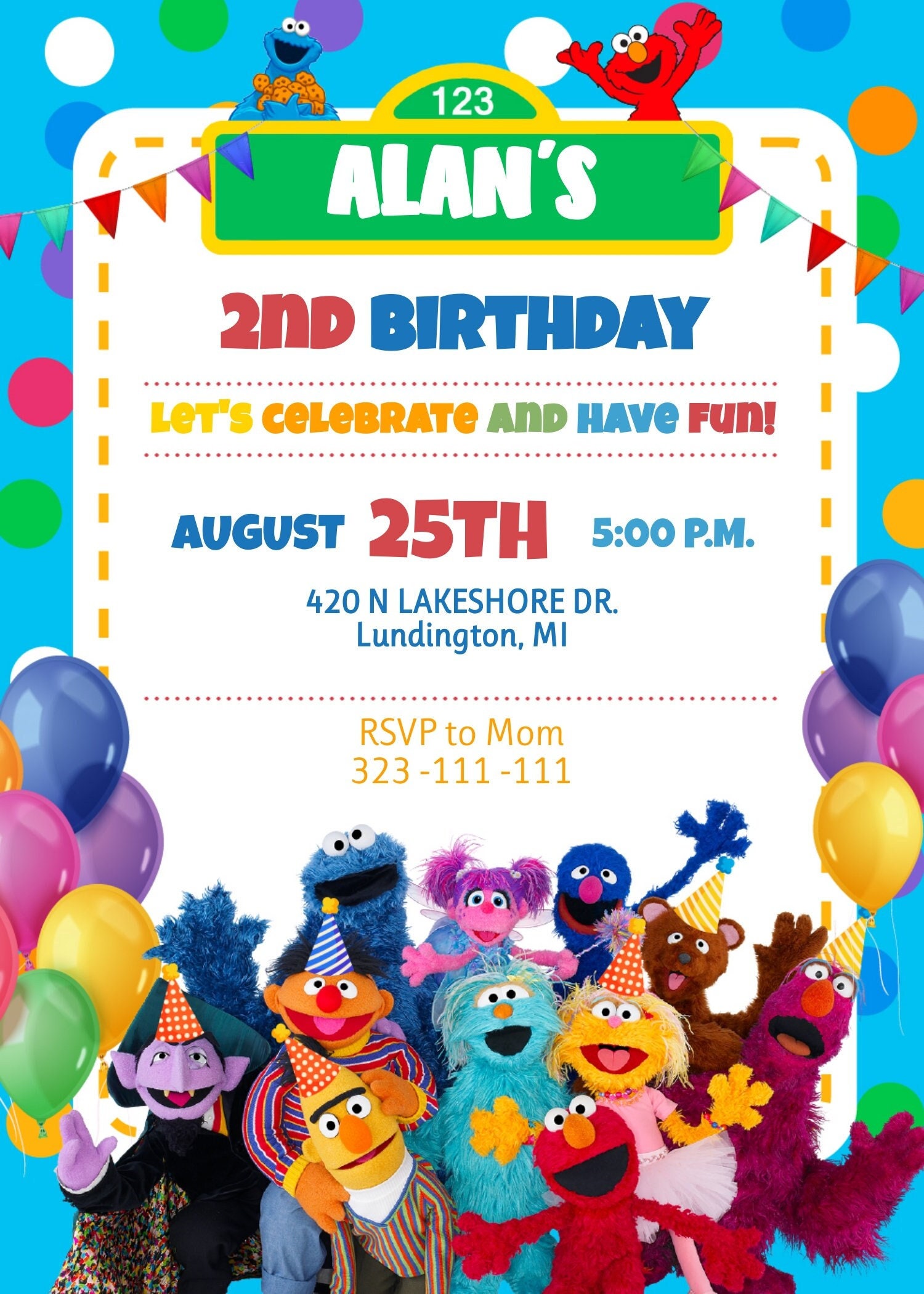 Editable Sesame Street Birthday Invitation Birthday Invitations
