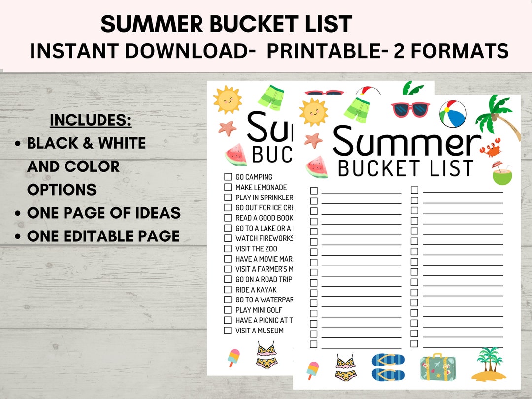 EDITABLE Summer Bucket List Printable Bundle Instant Digital Etsy