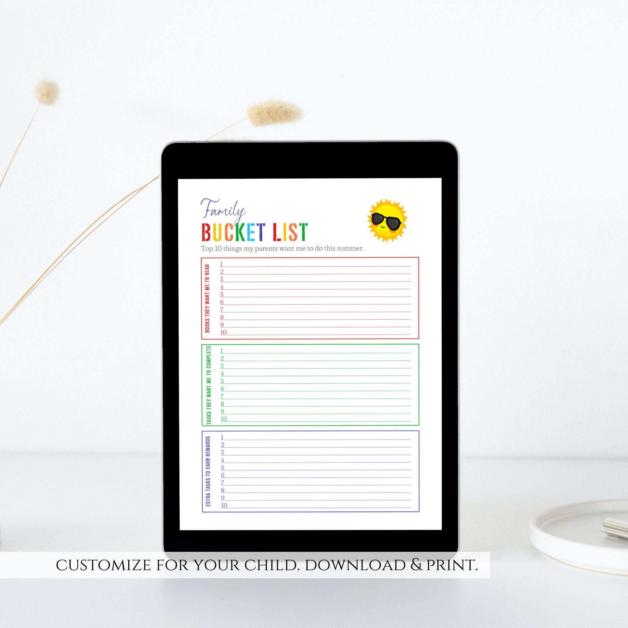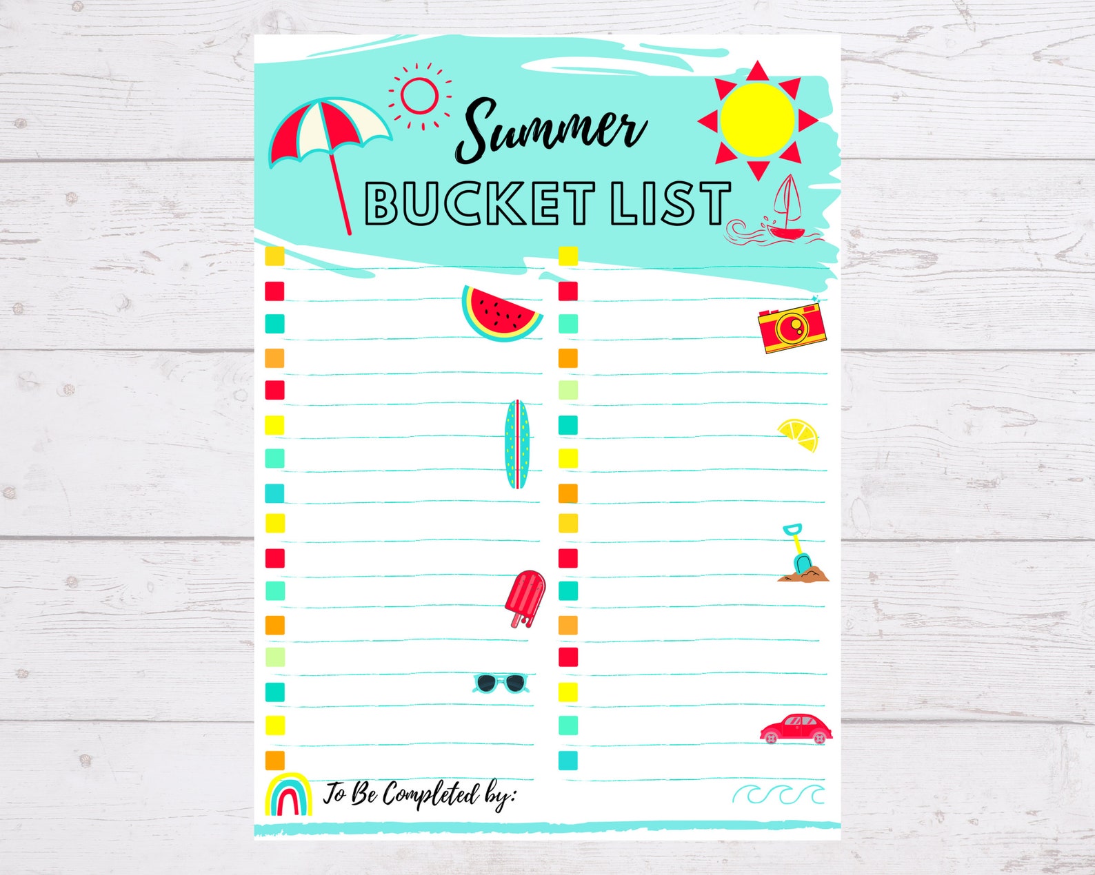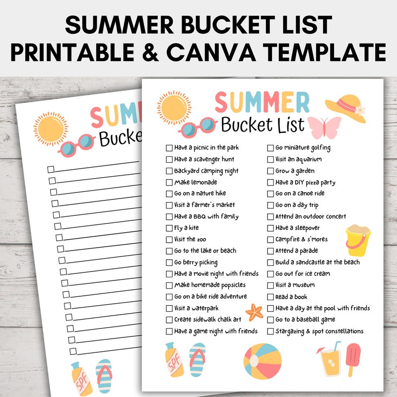 Editable Summer Bucket List Template Fun Customizable Printable for