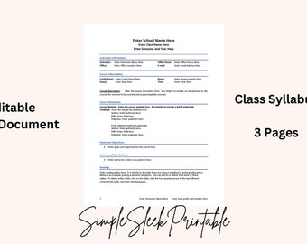 Editable Syllabus Template with Graphics for MIDDLE and HIGH School Classes