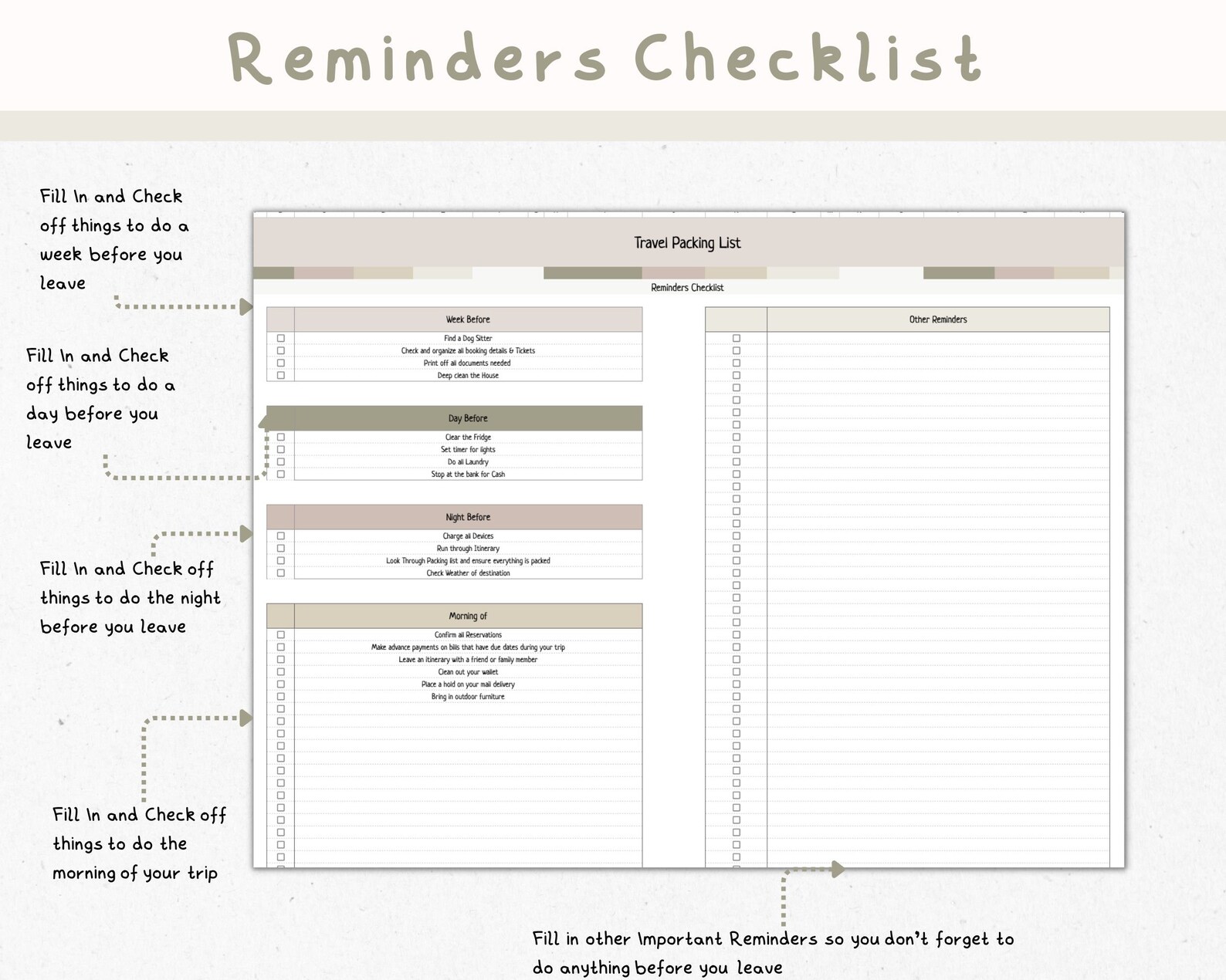 EDITABLE Travel Packing List Template in Google Sheets /excel