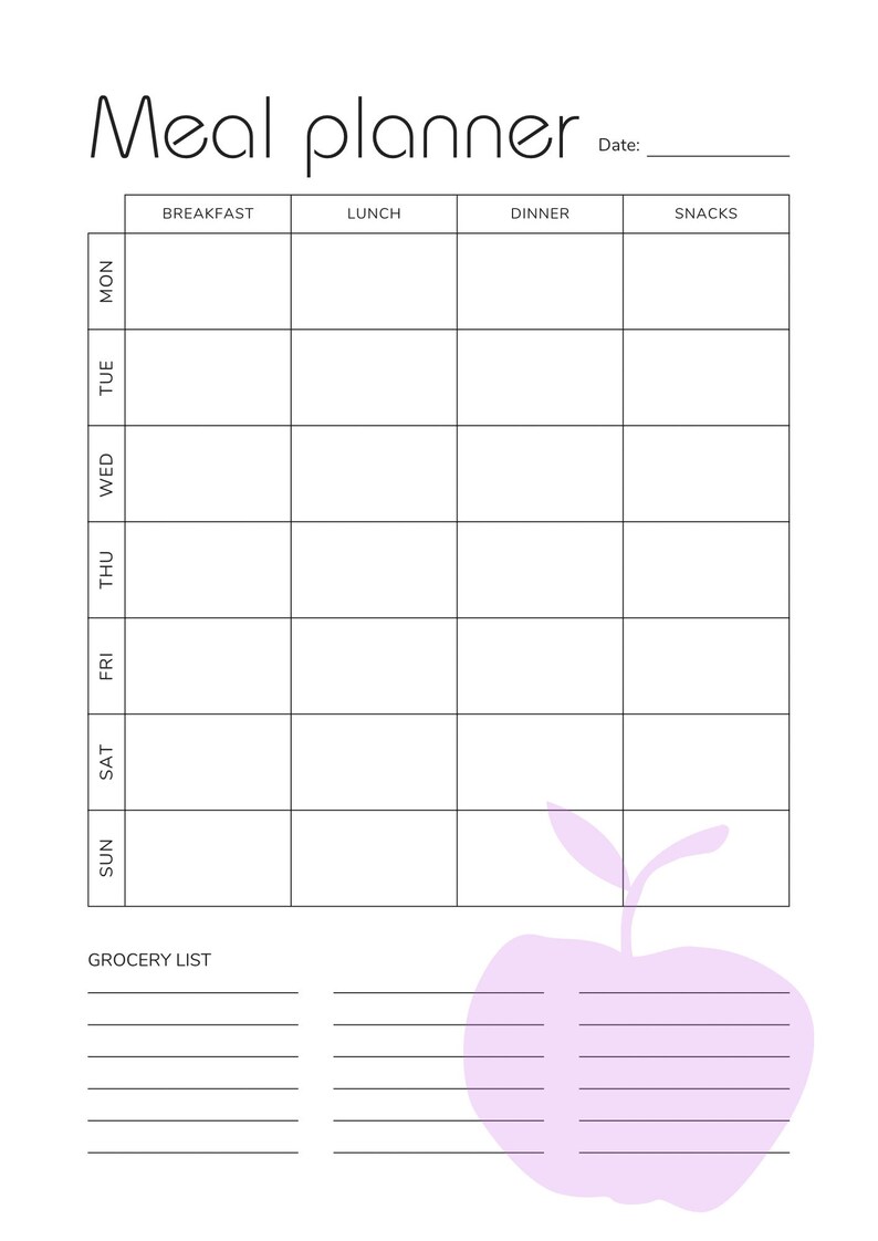 Minimalist Weekly Meal Planner Template Digital Weekly Meal Planner