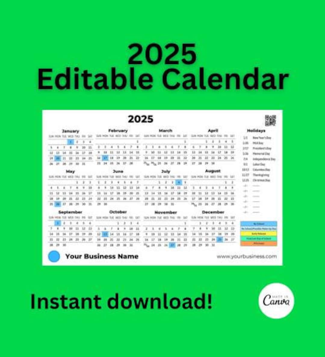 Editable Yearly Calendar Template 2025 Download and Customize Easily