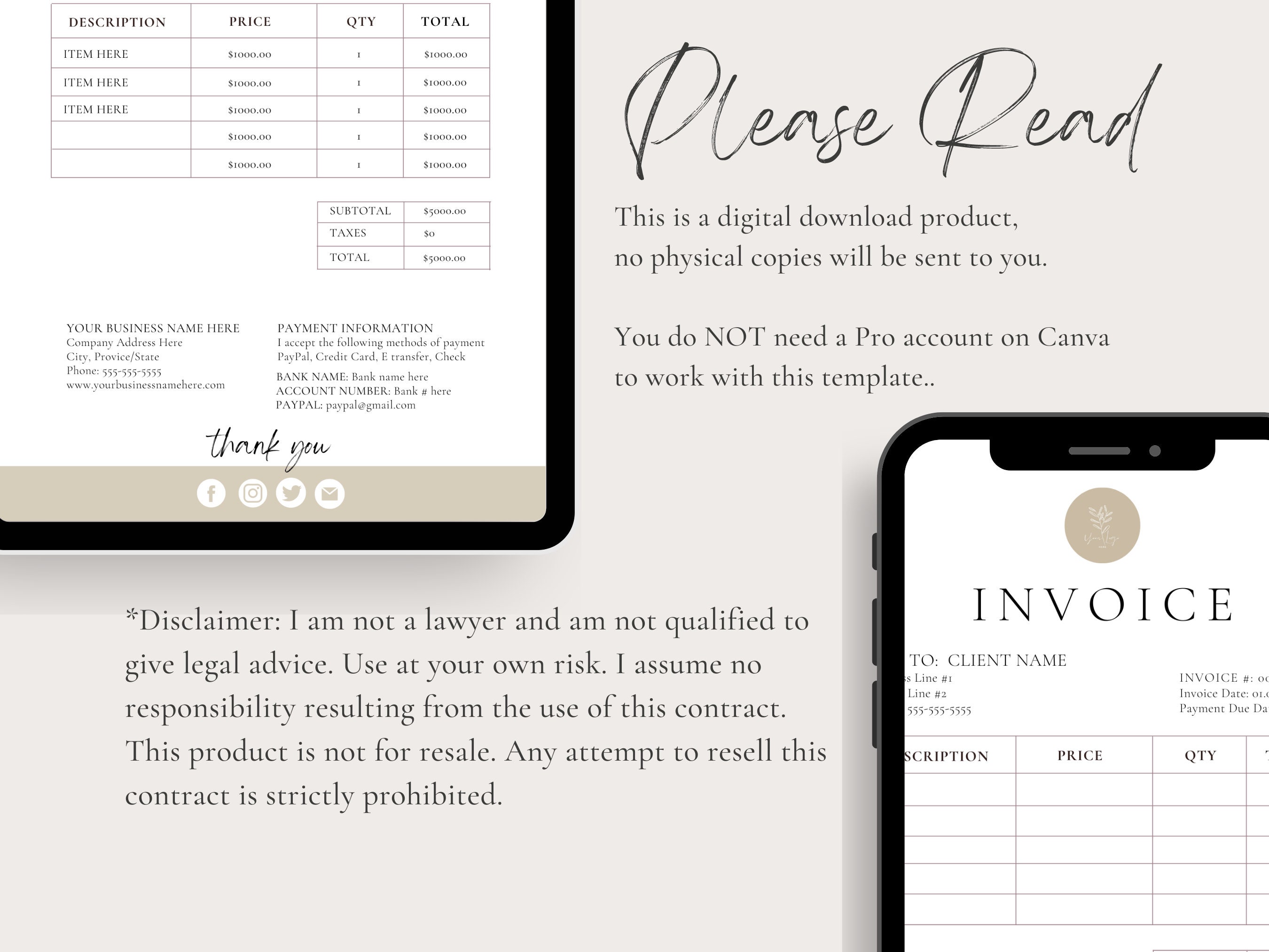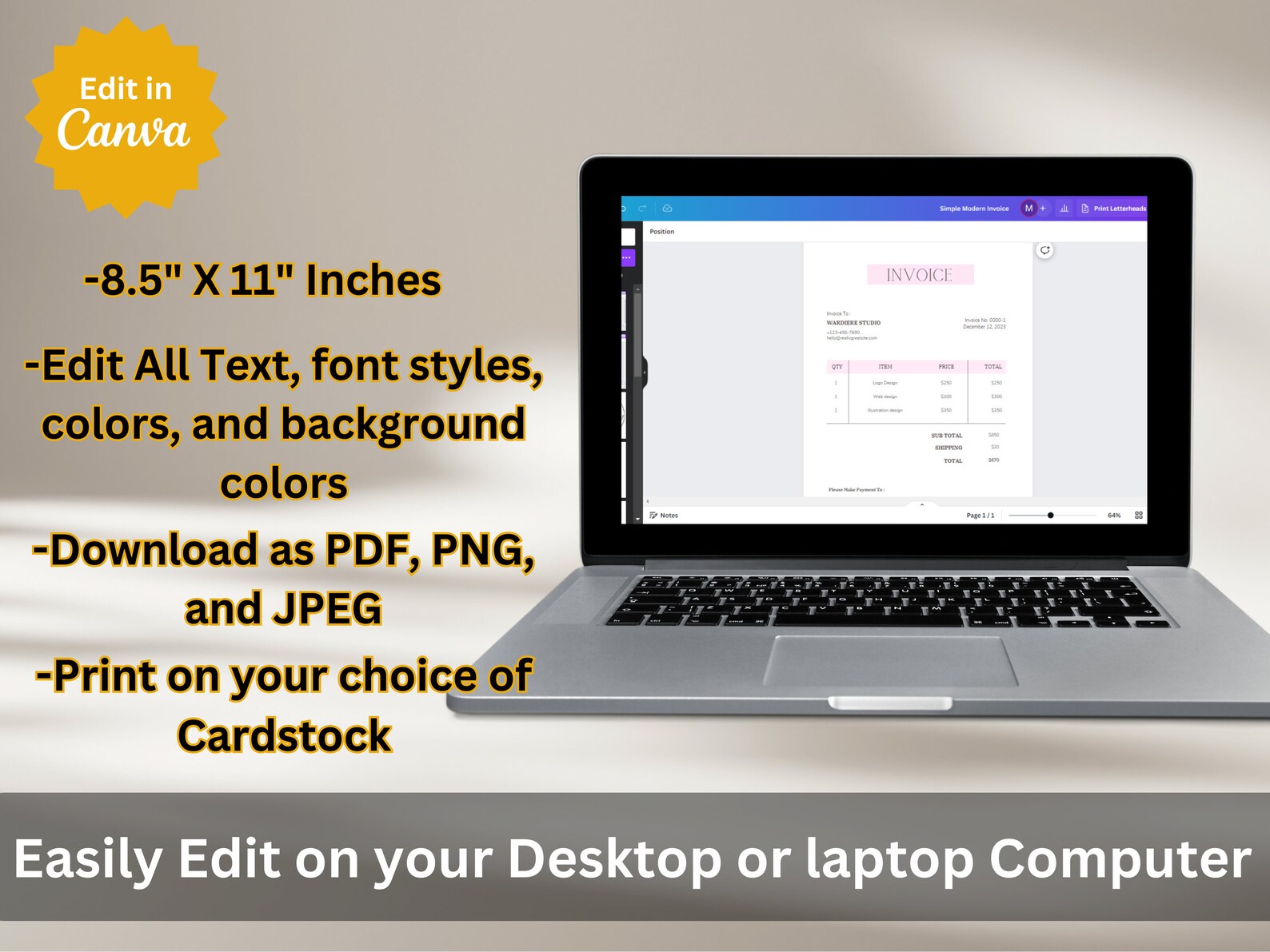 Custom Editable Invoice Template Etsy