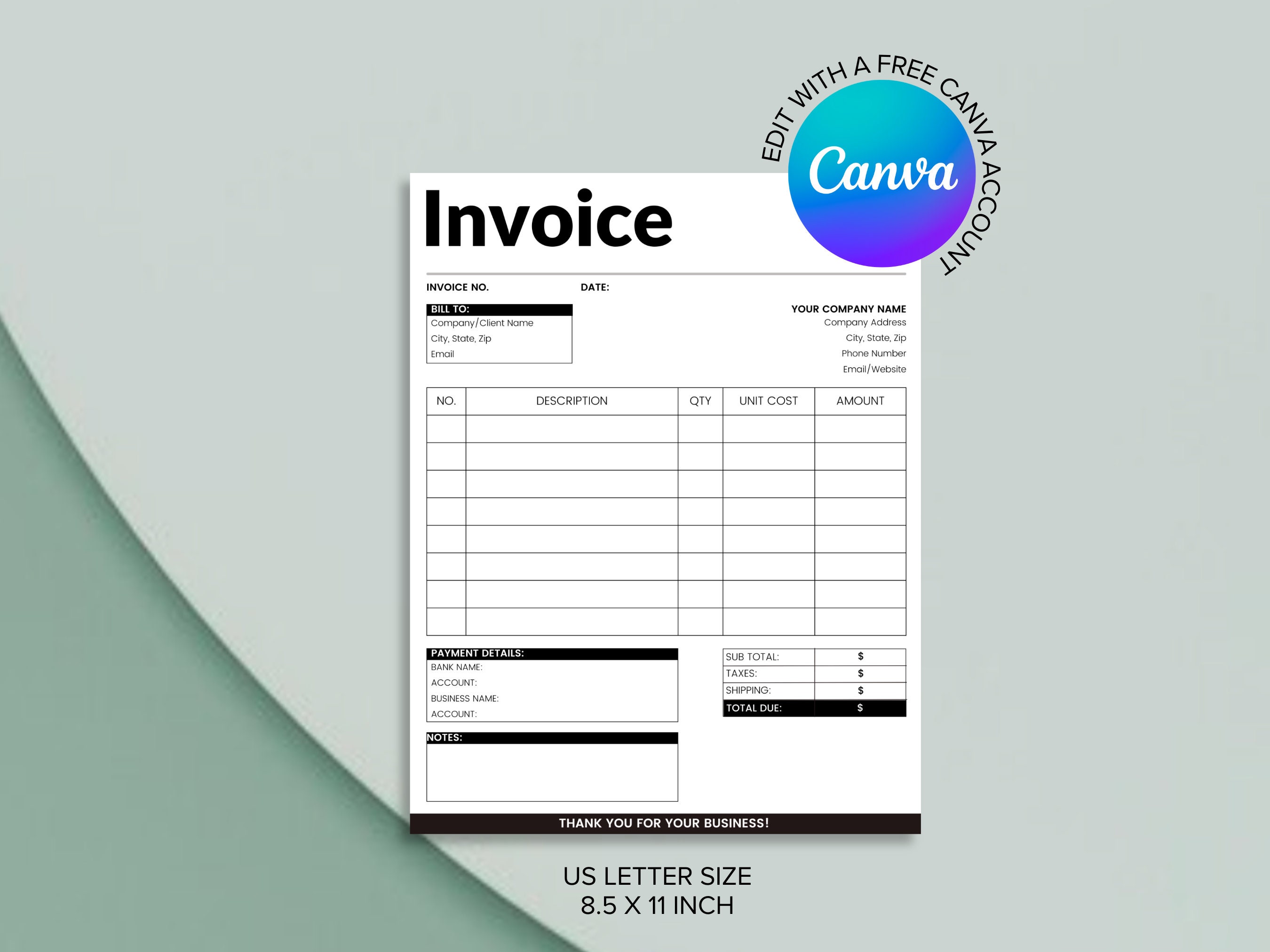Editable Invoice Template Professional Business Invoice Canva