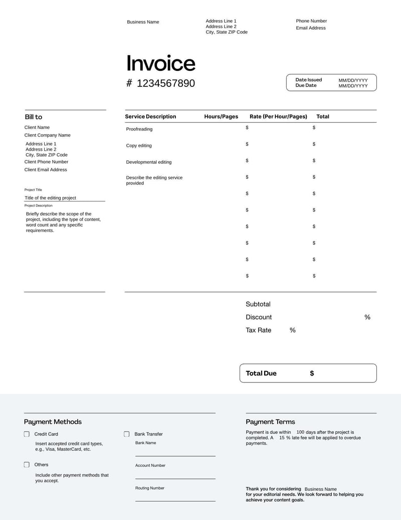 Editable Invoice Template Customizable Professional Business Invoice