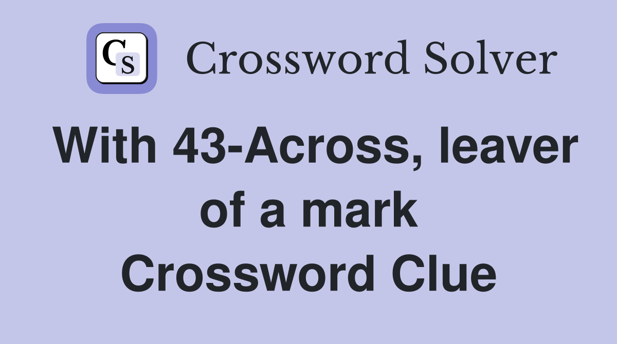 With 43 Across leaver of a mark Crossword Clue Answers Crossword