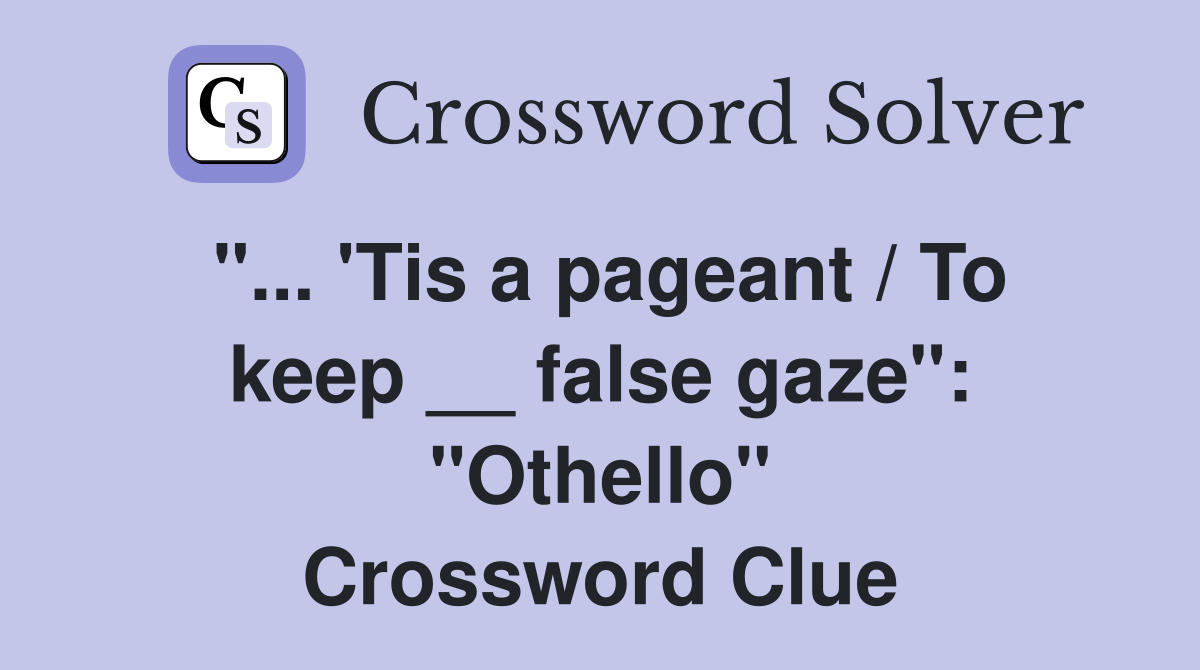 Tis a pageant / To keep false gaze quot : quot Othello quot Crossword Clue