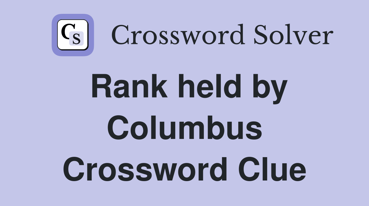 Rank held by Columbus Crossword Clue Answers Crossword Solver