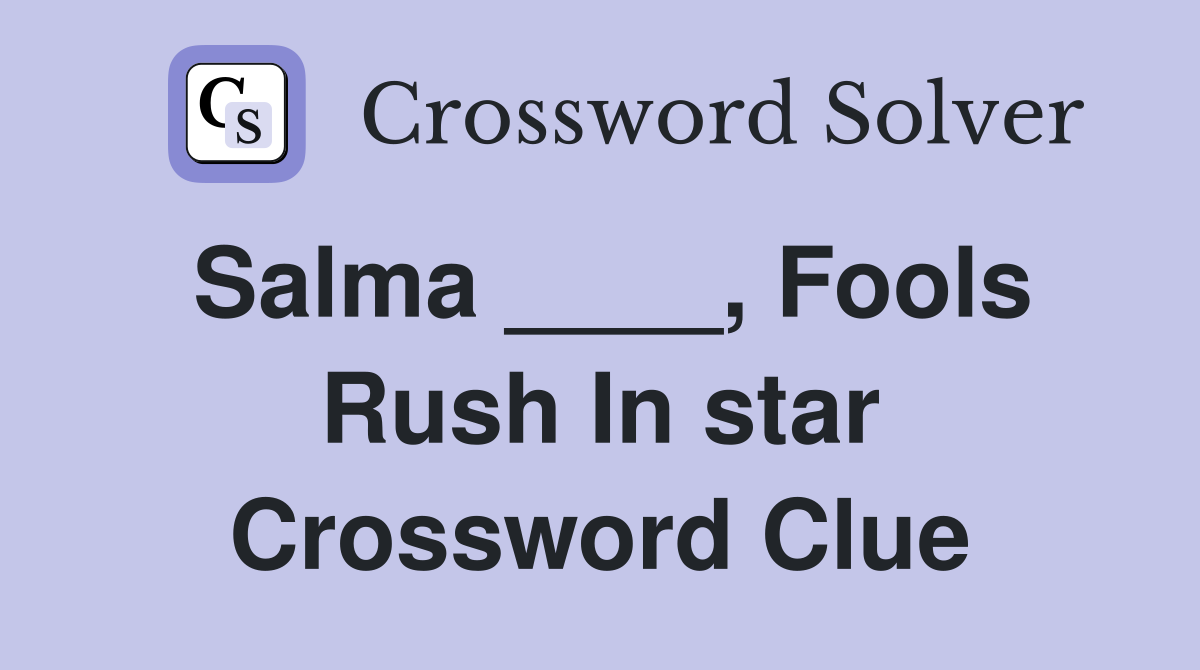 Salma Fools Rush In star Crossword Clue Answers Crossword Solver
