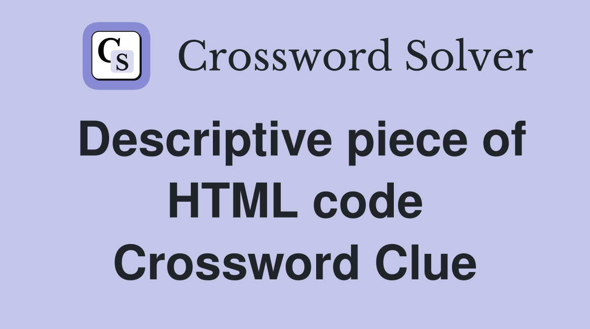 Descriptive piece of HTML code Crossword Clue Answers Crossword Solver