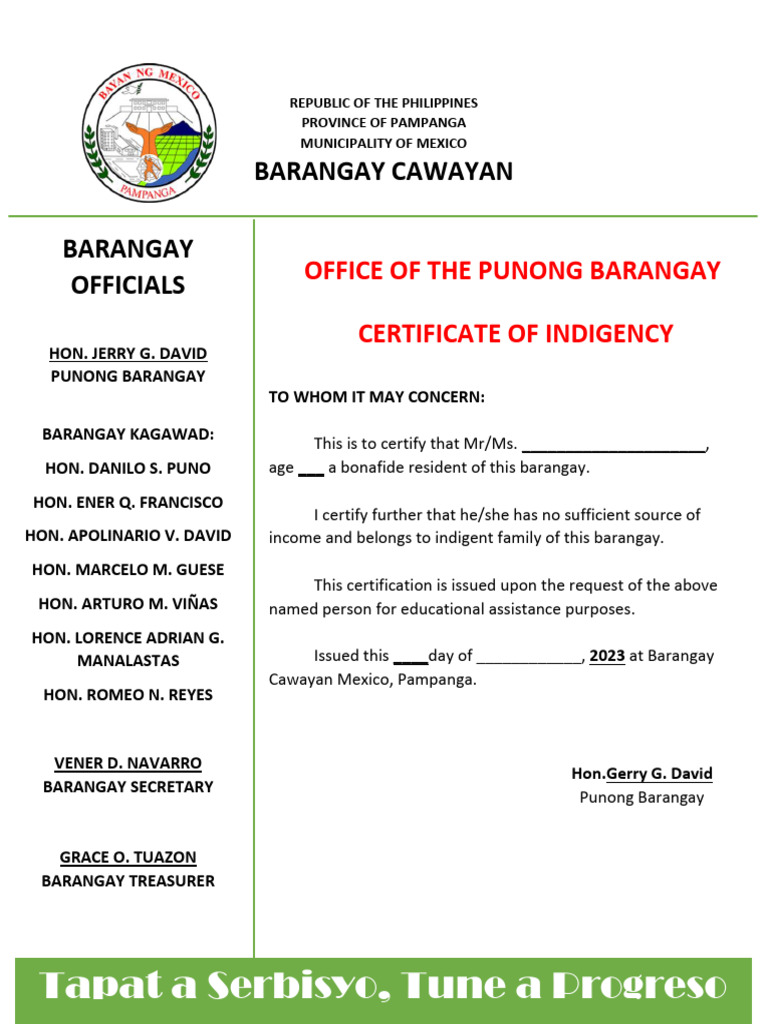 Certificate of Indigency PDF