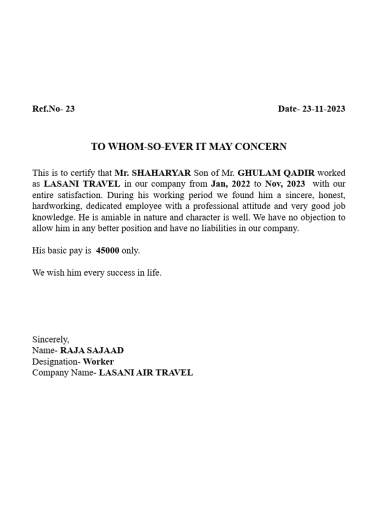 Experience Certificate PDF