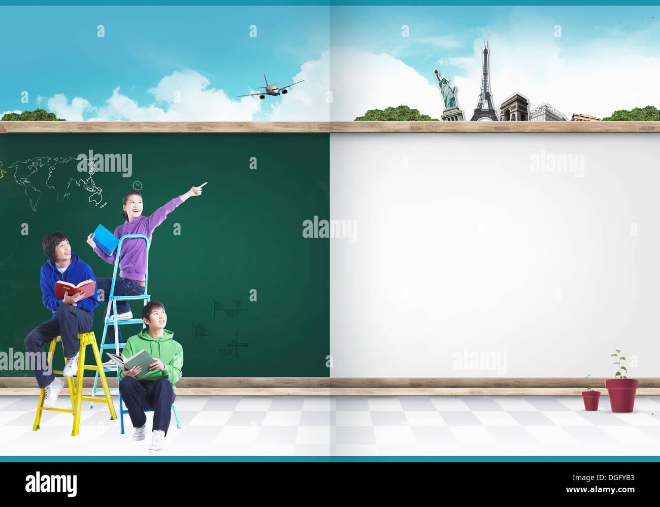 education booklet template featuring students climbing up ladder Stock