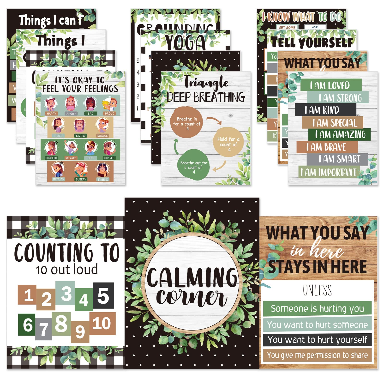Pajean 10 Pcs Calming Corner Classroom Poster Eucalyptus Mental Health