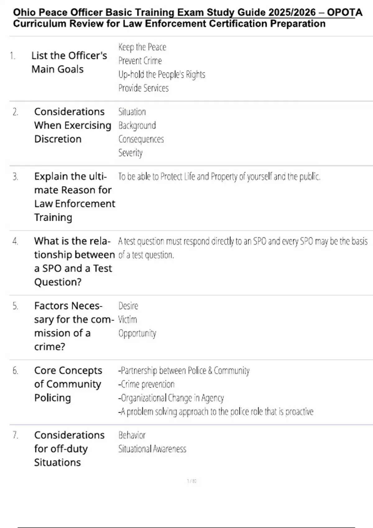 Ohio Peace Officer Basic Training Exam Study Guide 2025/2026 OPOTA