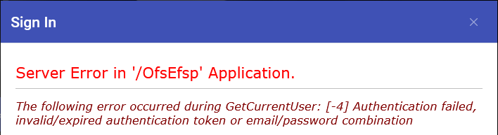 Login Error: GetCurrentUser 4 Authentication Failed Invalid/Expired