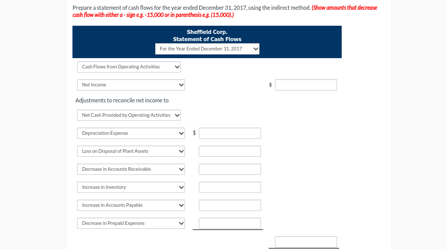 Solved The comparative balance sheets for Sheffield Corp as Chegg com