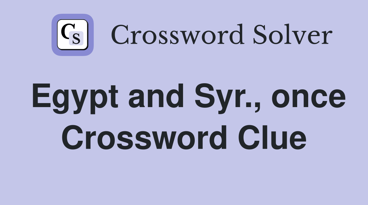 Egypt and Syr once Crossword Clue Answers Crossword Solver