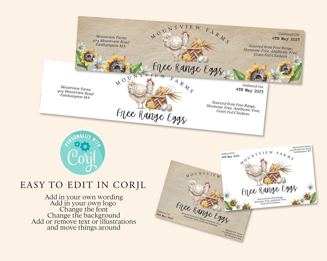 Egg Carton Label Template Printable Sticker Personalize for Farm or