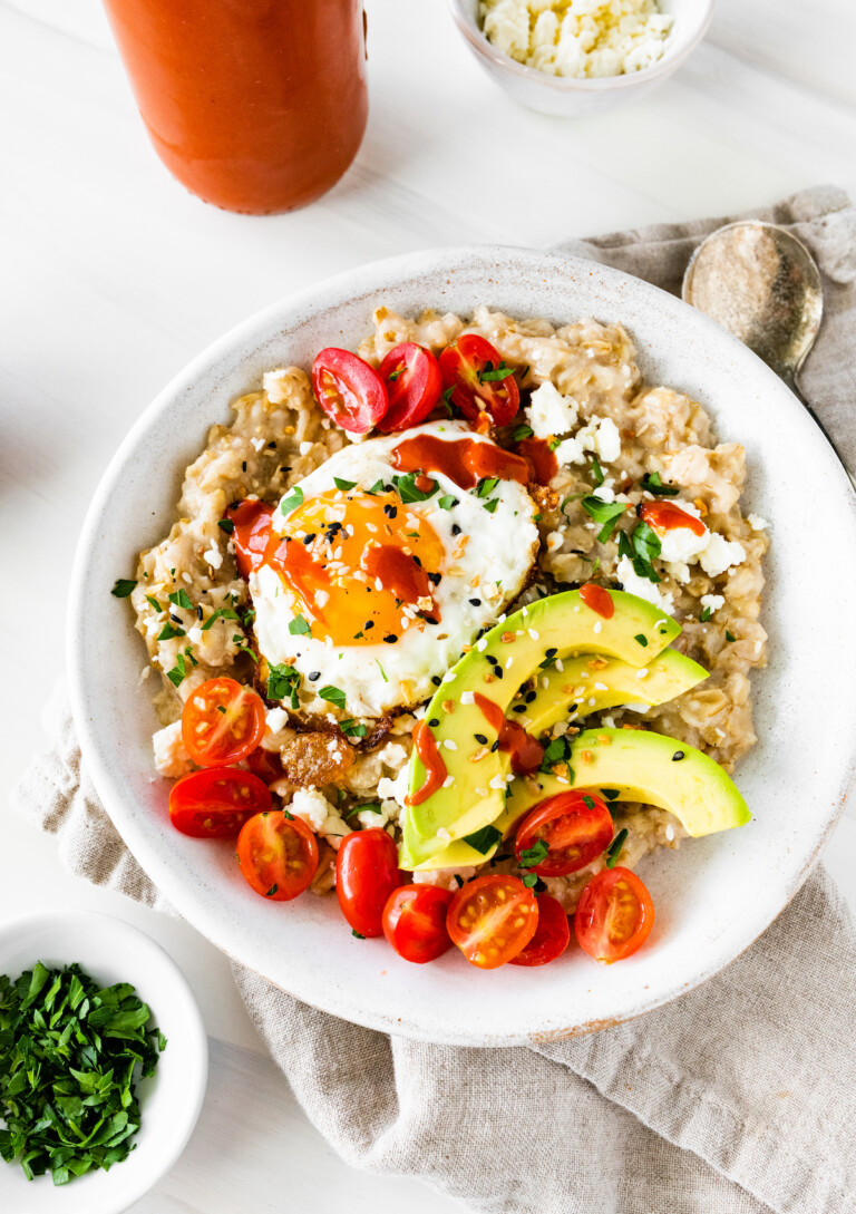 Savory Oatmeal Breakfast Bowl with Bacon Avocado Fried Egg Wendy