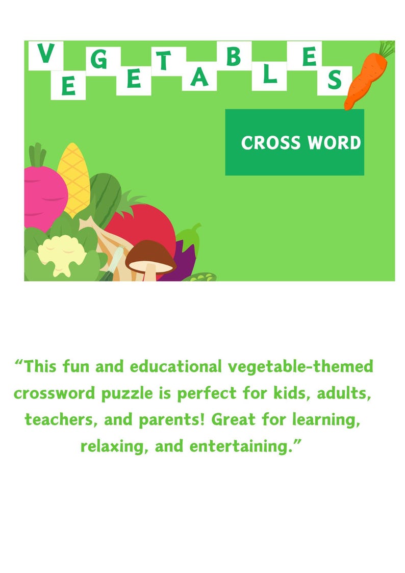 Vegetable Crossword Puzzle printable PDF for Fun Learning digital