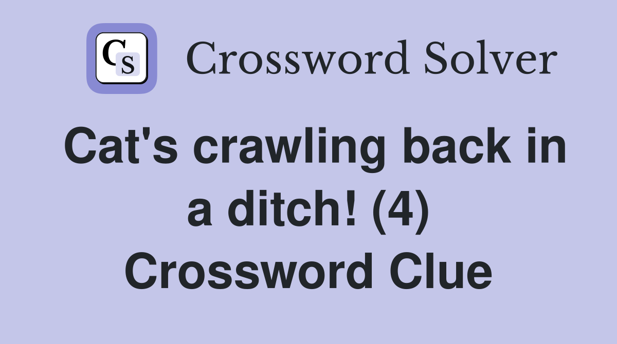 Cat #39 s crawling back in a ditch (4) Crossword Clue Answers