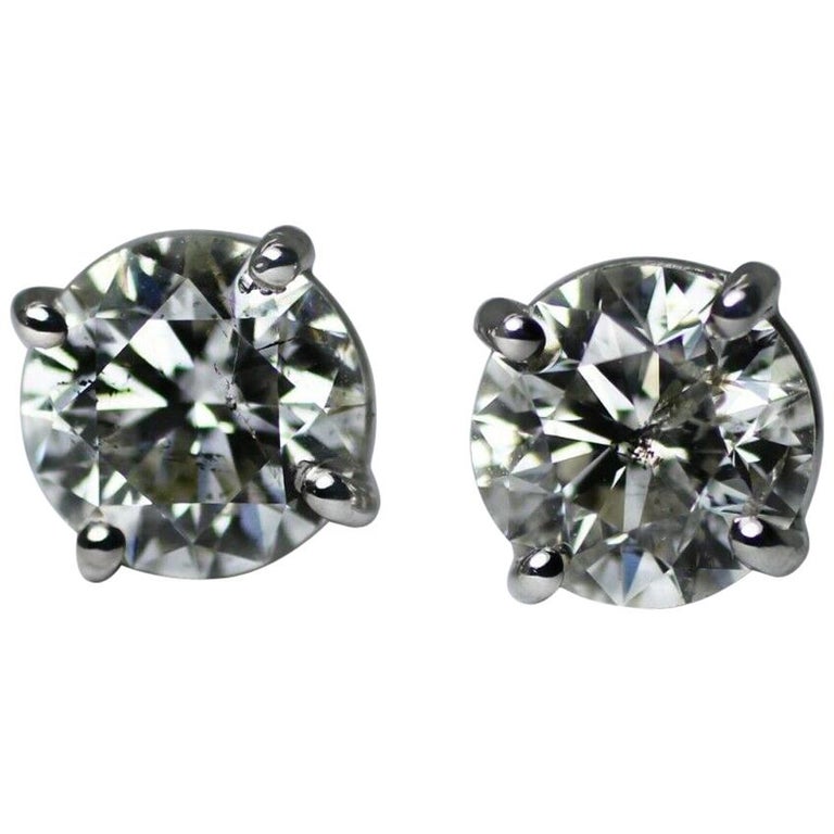 EGL Certificate 2 07 Carat Round G/H SI3 Stud Earrings For Sale at 1stdibs