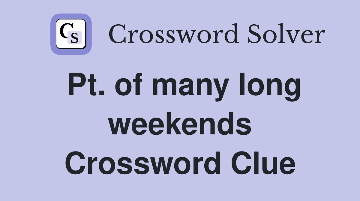 Pt of many long weekends Crossword Clue Answers Crossword Solver