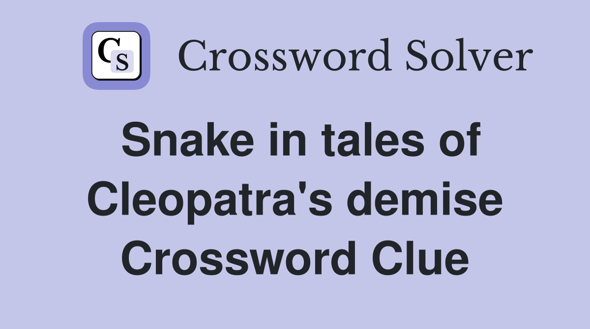 Snake in tales of Cleopatra s demise Crossword Clue Answers