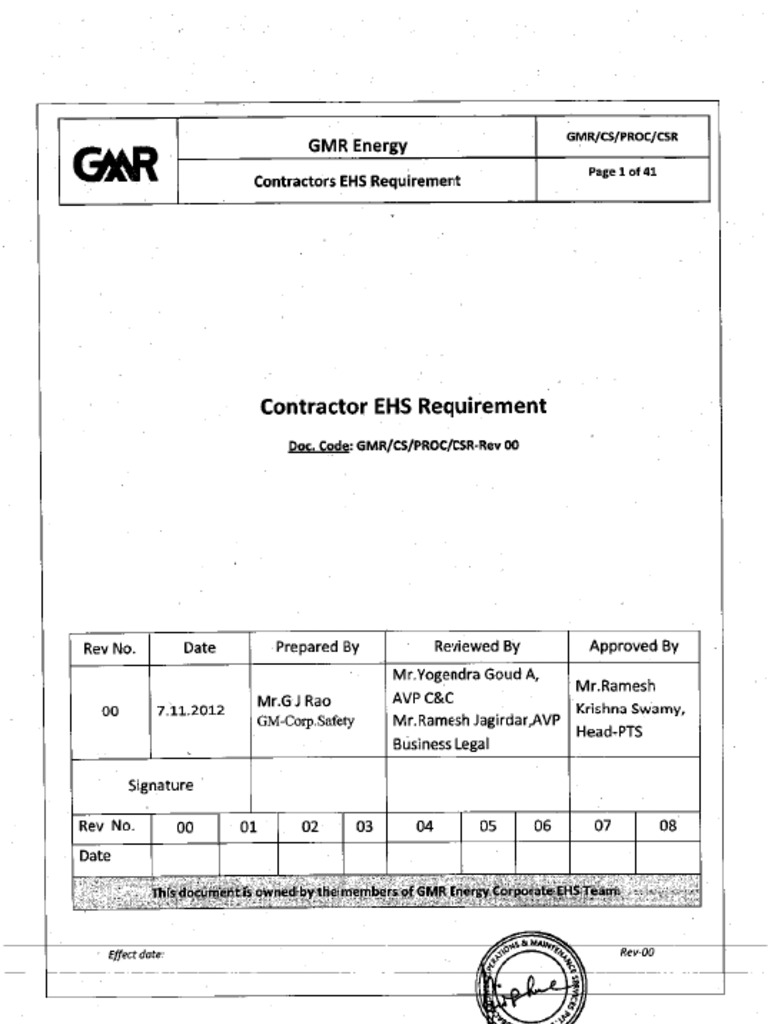 Environment Health Safety Manual: Revision No : 00 EFFECTIVE DATE: 1