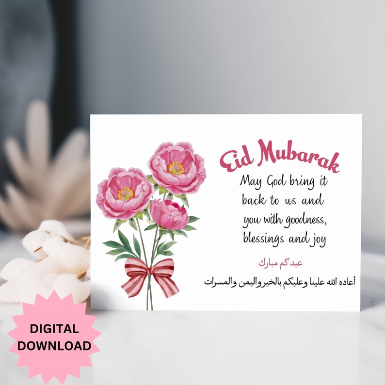 Floral Eid Mubarak Printable Cards Digital Eid Greeting Cards Happy