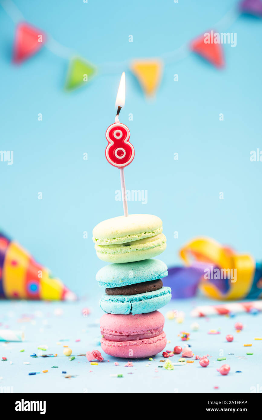 Eighth 8th Birthday Card with Candle in Colorful Macaroons and