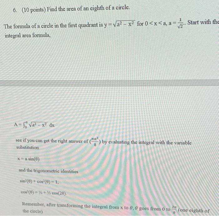 Solved 6 (10 points) Find the area of an eighth of a Chegg com