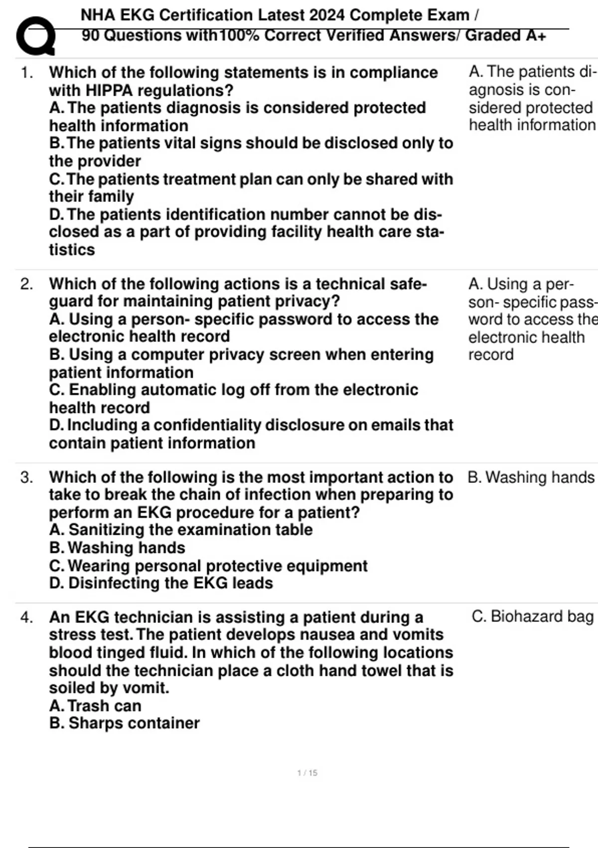 EKG Certification Test National Questions and Answers (Graded A) EKG