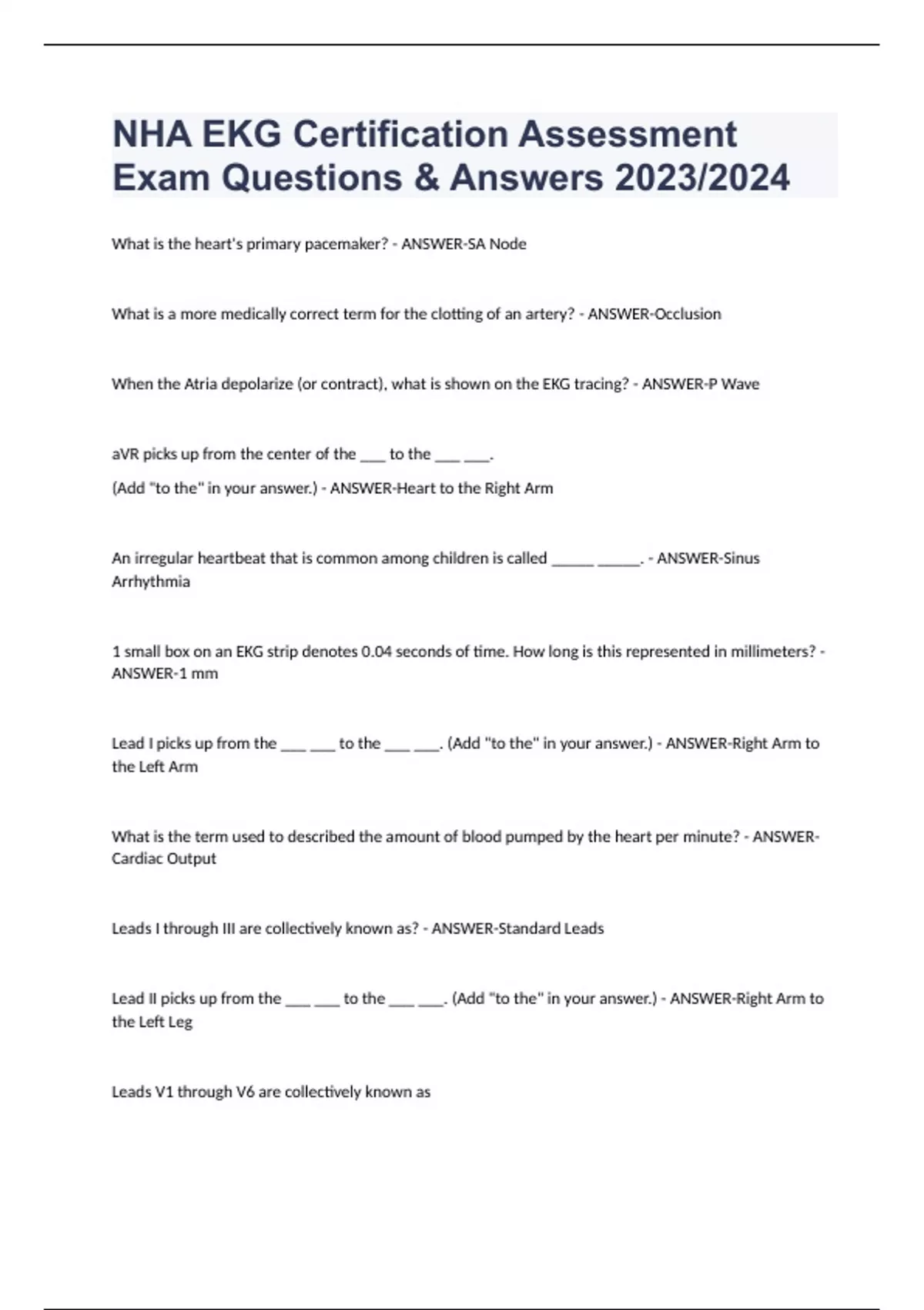 NHA EKG Certification Assessment Exam Questions Answers 2023/2024